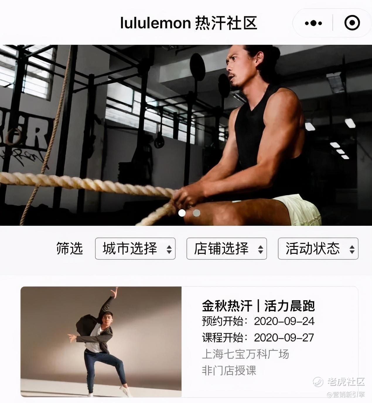 与此同时,Lululemon还专门为社区活动开发了小程序「热汗社区」,小程序上每周都会有在不同城市举行的与瑜伽相关的社区活动。在没有专卖店的城市,Lululemon甚至还会专门协调场地来举办活动。