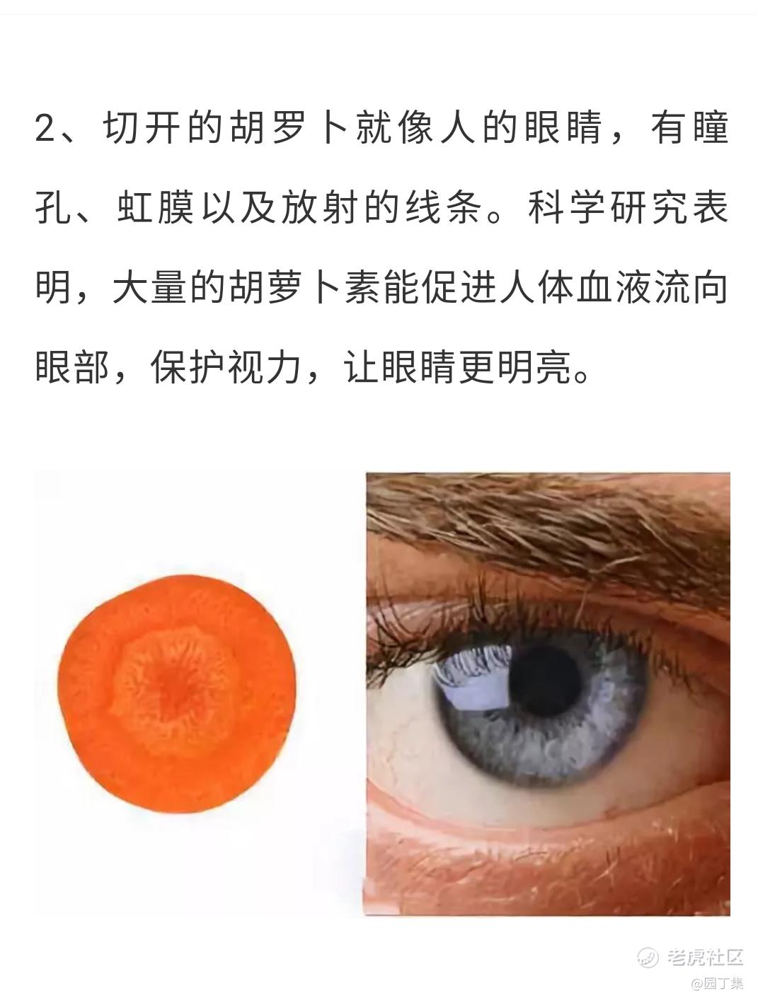 {"i18n":{"language":"zh_CN"},"detailType":1,"isChannel":false,"data":{"magic":2,"id":302386897,"tweetId":"302386897","gmtCreate":1604548640919,"gmtModify":1703833714427,"author":{"id":3558732976757297,"idStr":"3558732976757297","authorId":3558732976757297,"authorIdStr":"3558732976757297","name":"园丁集","avatar":"https://static.tigerbbs.com/666c85f0ef6e127b0c835034ae112173","vip":1,"userType":1,"introduction":"","boolIsFan":false,"boolIsHead":false,"crmLevel":1,"crmLevelSwitch":0,"individualDisplayBadges":[],"fanSize":2,"starInvestorFlag":false},"themes":[],"images":[{"img":"https://static.tigerbbs.com/bb515cce3359d1c49e7788a9311f6f8b","width":"1071","height":"1415"}],"coverImages":[{"img":"https://static.tigerbbs.com/bb515cce3359d1c49e7788a9311f6f8b","width":"1071","height":"1415"}],"extraTitle":"","html":"<html><head></head><body><p>切开的胡罗卜就像人的眼睛,有瞳孔、虹膜以及放射的线条。科学研究表明,大量的胡萝卜素能促进人体血液流向眼部,保护视力,让眼睛更明亮。</p><p><img src=\"https://static.tigerbbs.com/bb515cce3359d1c49e7788a9311f6f8b\" tg-width=\"1071\" tg-height=\"1415\"></p></body></html>","htmlText":"<html><head></head><body><p>切开的胡罗卜就像人的眼睛,有瞳孔、虹膜以及放射的线条。科学研究表明,大量的胡萝卜素能促进人体血液流向眼部,保护视力,让眼睛更明亮。</p><p><img src=\"https://static.tigerbbs.com/bb515cce3359d1c49e7788a9311f6f8b\" tg-width=\"1071\" tg-height=\"1415\"></p></body></html>","text":"切开的胡罗卜就像人的眼睛,有瞳孔、虹膜以及放射的线条。科学研究表明,大量的胡萝卜素能促进人体血液流向眼部,保护视力,让眼睛更明亮。","highlighted":1,"essential":1,"paper":1,"likeSize":0,"commentSize":0,"repostSize":0,"favoriteSize":0,"link":"https://laohu8.com/post/302386897","repostId":0,"isVote":1,"tweetType":1,"viewCount":3541,"commentLimit":10,"likeStatus":false,"favoriteStatus":false,"reportStatus":false,"symbols":[],"verified":2,"subType":0,"readableState":1,"langContent":"CN","currentLanguage":"CN","warmUpFlag":false,"orderFlag":false,"shareable":true,"causeOfNotShareable":"","featuresForAnalytics":[],"commentAndTweetFlag":false,"andRepostAutoSelectedFlag":false,"upFlag":false,"length":123,"xxTargetLangEnum":"ZH_CN"},"commentList":[],"isCommentEnd":true,"isTiger":false,"isWeiXinMini":false,"url":"/m/post/302386897"}