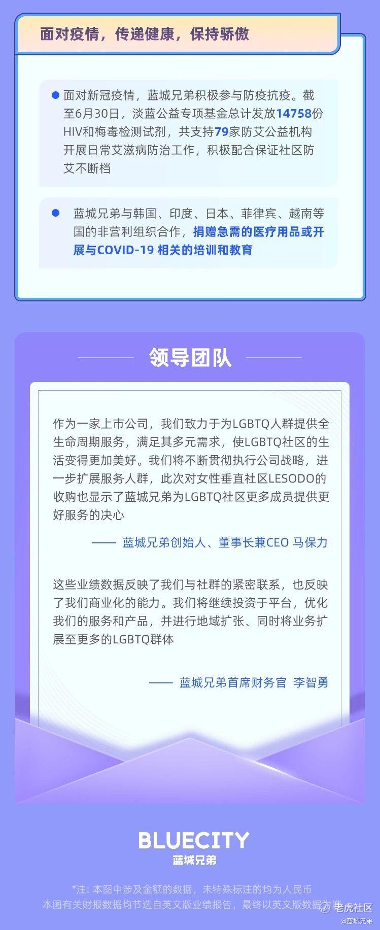 北京时间8月26日,全球领先的LGBTQ社区蓝城兄弟(BlueCity,Nasdaq:BLCT)发布了截至2020年6月30日的第二季度未经审计的财务报告。财报显示,蓝城兄弟2020年第二季度总收入2.474亿元人民币,同比增长32.2%。全球注册用户达到5400万,其中月活跃用户640万,总付费用户较去年大幅增长58.5%。在营收持续增长的前提下,得益于规模效益和收入结构的不断优化,蓝城兄弟净亏损从2019年第二季度的1220万元人民币大幅收窄至330万元人民币。$蓝城兄弟(BLCT)$