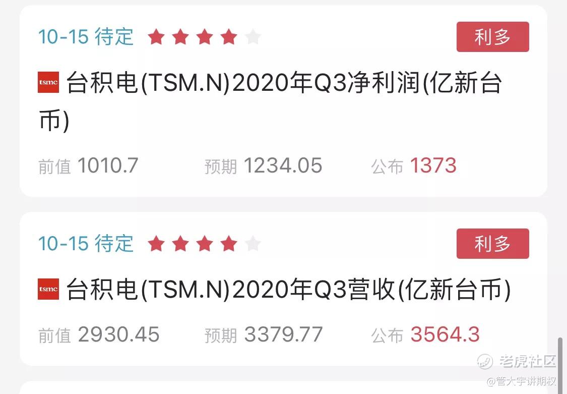其实这些只是背景哈,下面就带出本次操作的重点,10月15号周四盘前TSM台积电公布业绩:
