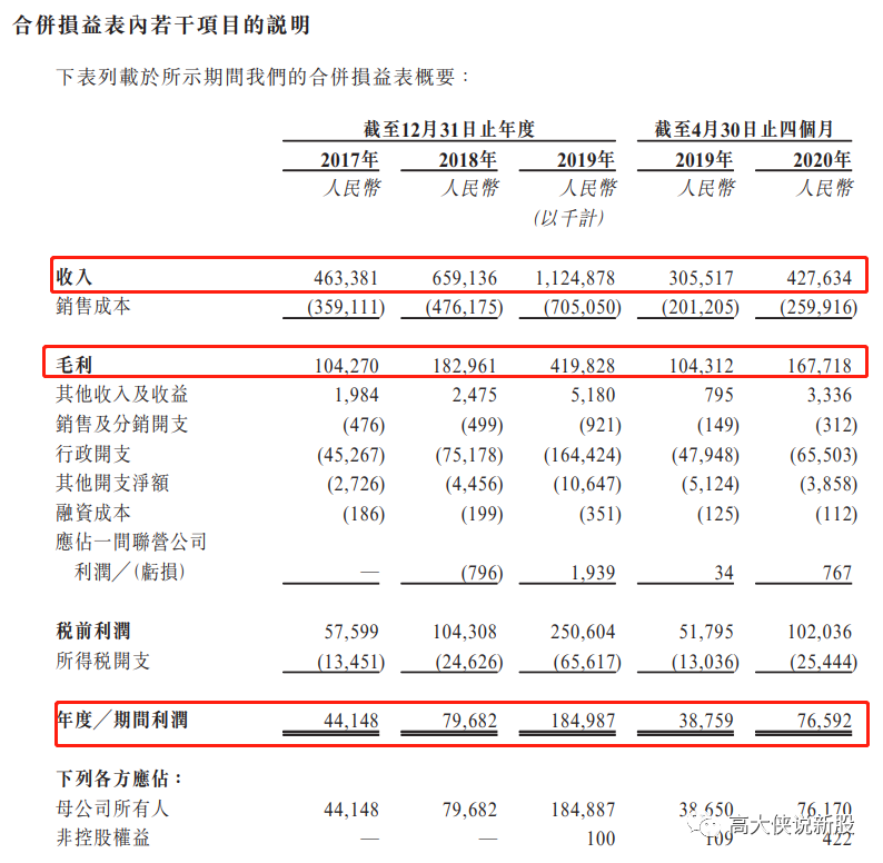 净利润:2017-2019年,合景悠活的净利润为4414万元,7968万元及1.84亿元,复合年增长率为104.7%,非常优秀,2020年4月份同比去年几乎翻倍!