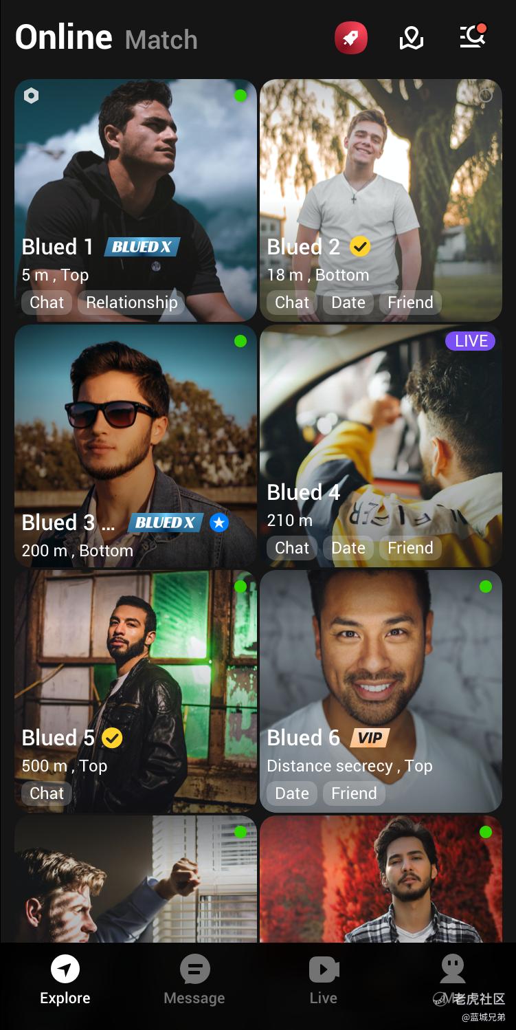 近日,全球领先的LGBTQ社区蓝城兄弟旗下产品Blued在拉美地区迎来重大版本更新。在对UI界面进行优化升级的同时,全面推出了头像认证和“闪聊”等功能。目前相关版本已经在陆续推送中。$蓝城兄弟(BLCT)$