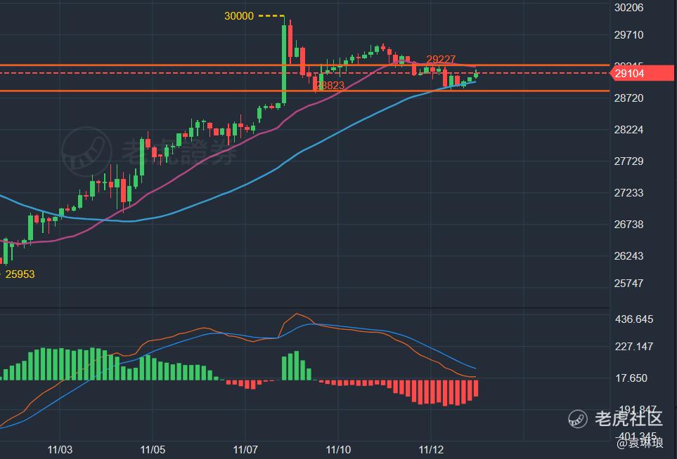 准备在29200附近空,止损29300,目标28500
