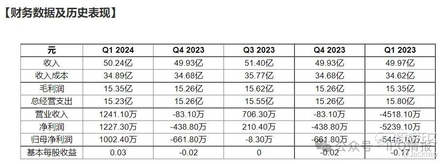 IPO情报消息,5月13日,叮咚买菜发布Q1财报,2024财年第一财季收入50.24亿元,去年同期收入为49.97亿元,同比增长0.53%。2024财年第一财季净利润1227.30万元,去年同期净亏损为5239.10万元。基本每股收益为0.03元,去年同期为-0.17元。