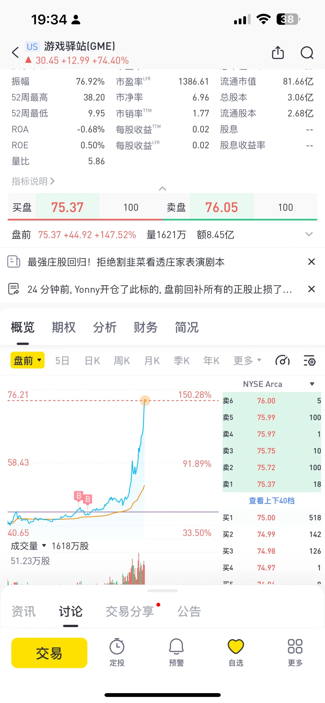 甚至连Roaring Kitty的账号都不确定是不是本人,不知道Elon Musk会不会查?(反正是有可能阻碍到 $特斯拉(TSLA)$ 的交易)