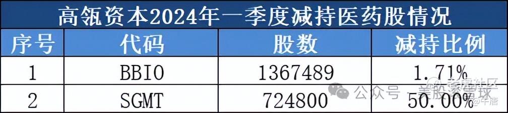 BBIO:一季度,高瓴资本减持了1.71%。公司在2023年12月宣布递交了治疗ATTR-CM的药物acoramidis上市申请,股价也是一路上涨,高瓴资本也是借机逢高减持了50%。此前。公司在去年7月发布了治疗ATTR-CM的三期数据,股价暴涨,高瓴资本也在当时减持了50%。