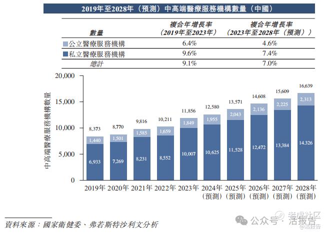 2019年至2023年,私立中高端医疗服务机构数量快速增长,从2019年的6,993家增加至2023年的10,007家,复合年增长率为9.6%,预计从2023年至2028年将进一步以7.4%的复合年增长率增长,到2028年将达到14,326家。