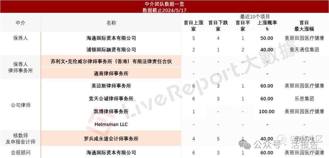 据LiveReport大数据统计,海通国际保荐项目首日破发率为24.29%,浦银国际保荐项目首日破发率为20%。