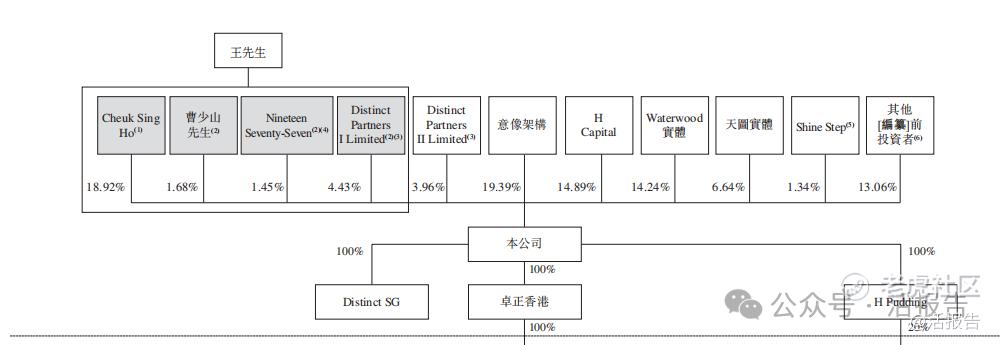 Cheuk Sing Ho持股18.92%、曹少山先生持股1.68%、张向东先生通过Nineteen Seventy-Seven持股1.45%、受限制股份单位计划Distinct Partners I,持股4.43%,创始人王志远先生为公司的最终单一最大股东,能够行使合计26.48%的投票权。