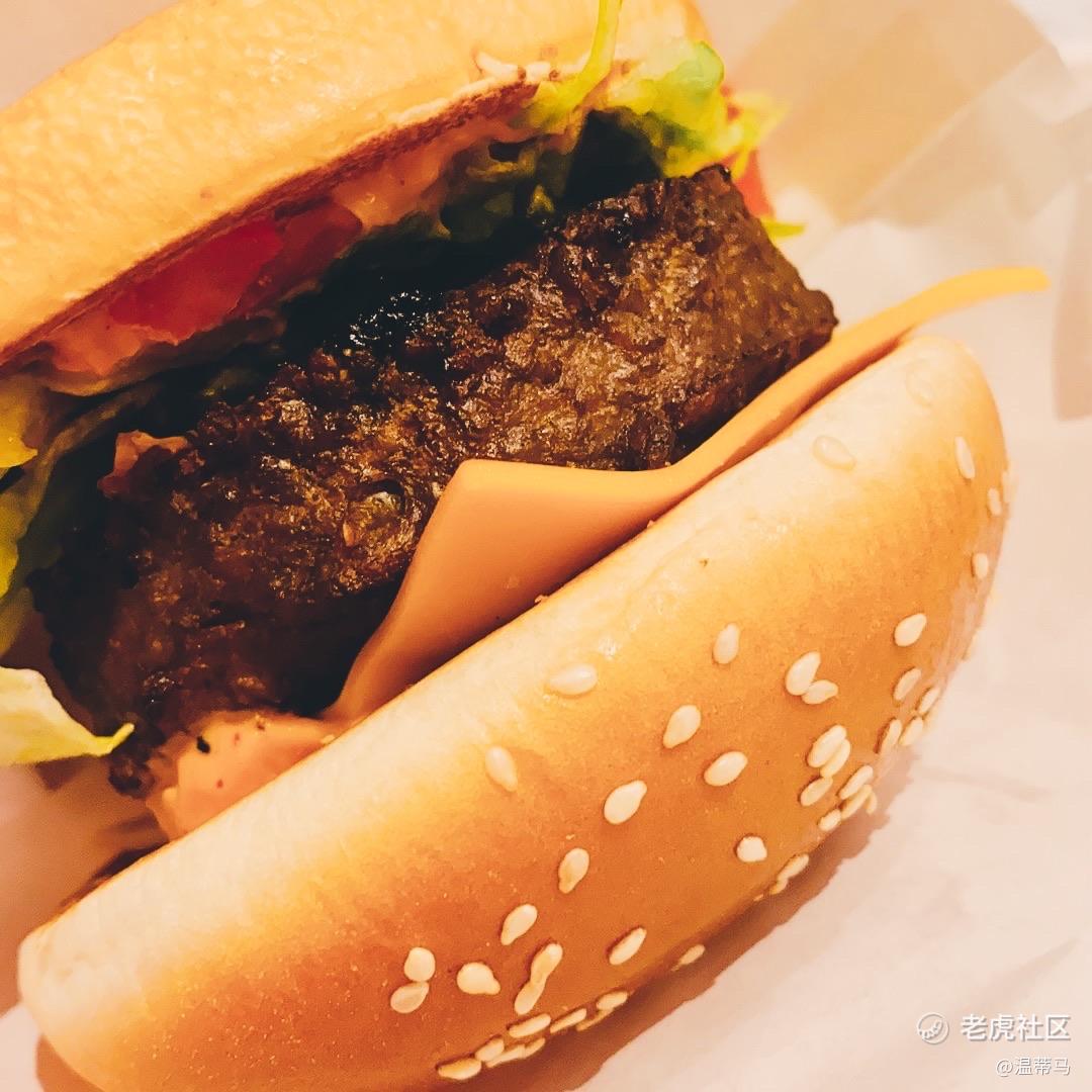 植物牛肉汉堡,真的很难吃,颗粒感太重了。还不如