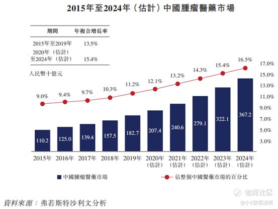 根据弗若斯特沙利文的报告,中国肿瘤医药市场过去5年的复合增长率为13.5%;并预计今后5年保持15.4%的年复合增长。