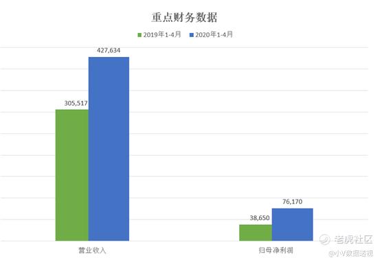 今年1-4月对比去年同期,营收增40%,归母净利润更是翻番。