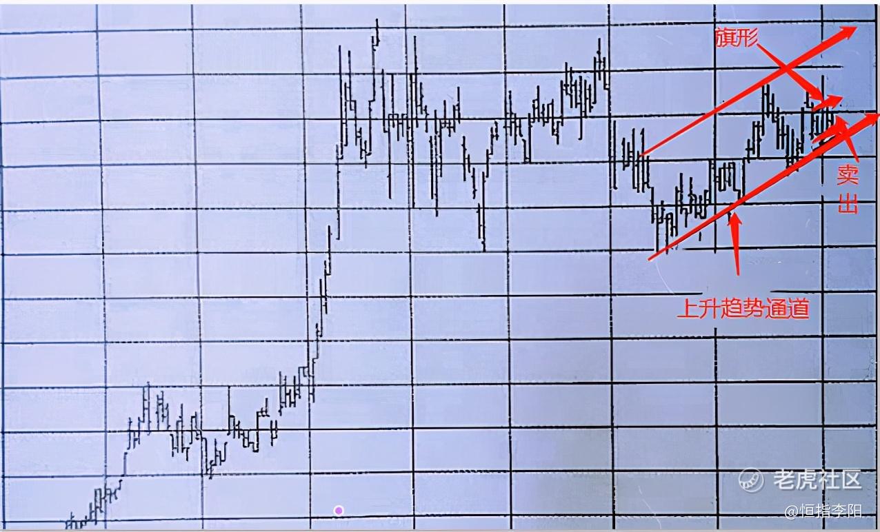3.在接近上升趋势通道的低端形成旗形,预示着即将到来的向下突破