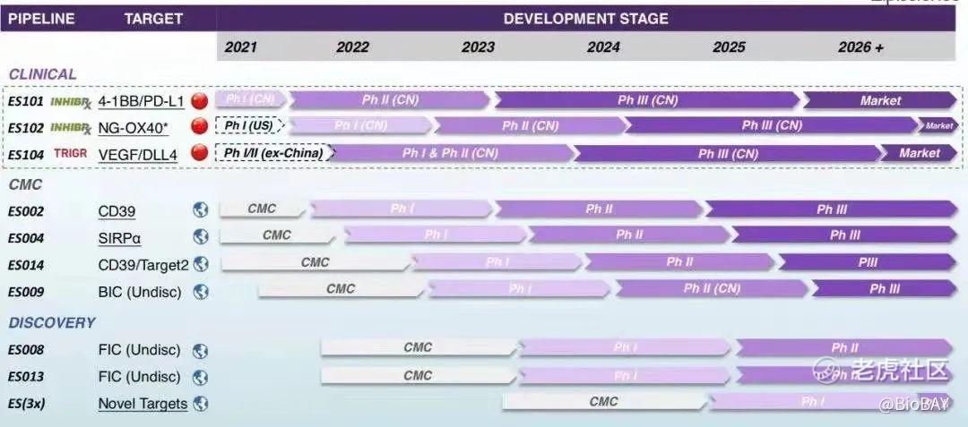 作为一家处 于临床阶段的生物医药创新企业,科望医药专注于肿瘤免疫治疗,致力于引领新一代肿瘤免疫创新药的研究开发,从而惠及全球癌症患者。 科望医药拥有丰富的产品管线,其中ES101、ES102 已在临床试验阶段,另外三个自主研发的全球创新产品也即将申报临床。 此外,还有10余条全球领先的临床前管线,广泛覆盖当下免疫治疗新靶点,并重点布局天然免疫和肿瘤微环境领域的新药研发。