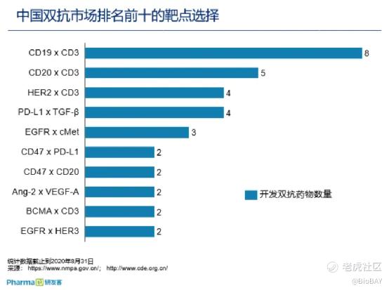 据小二了解,国内的双抗研发约有近60种双抗靶点联合方式。在双抗开发数量排名前十的靶点选择中,有四类选择与CD3靶点联合开发。科望医药是国内少数研发同时靶向VEGF和DLL4靶点的双抗药企。