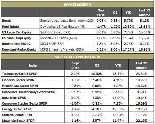 标准普尔500指数在九月继续持平,但季度增长超过3%,目前年涨幅超过7%。