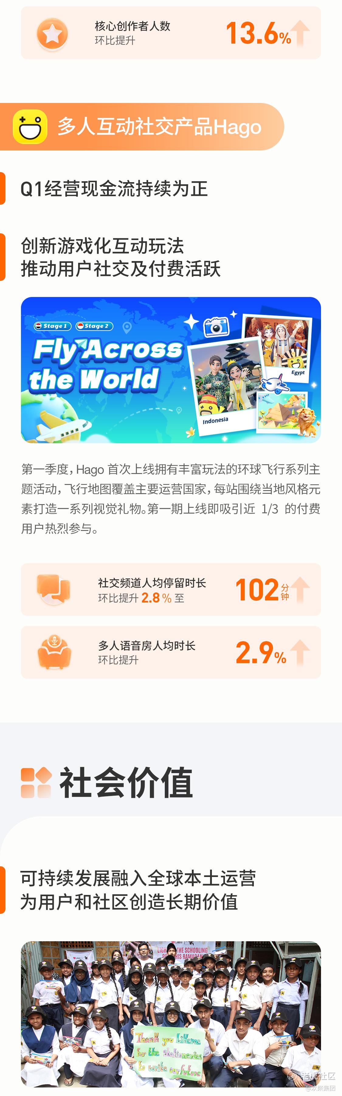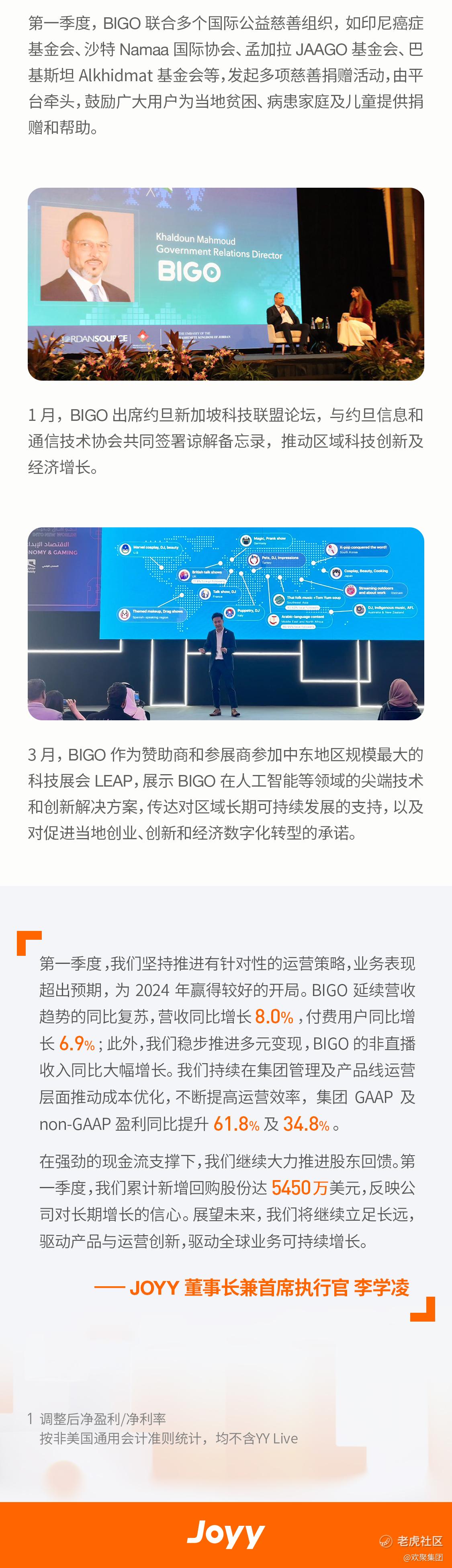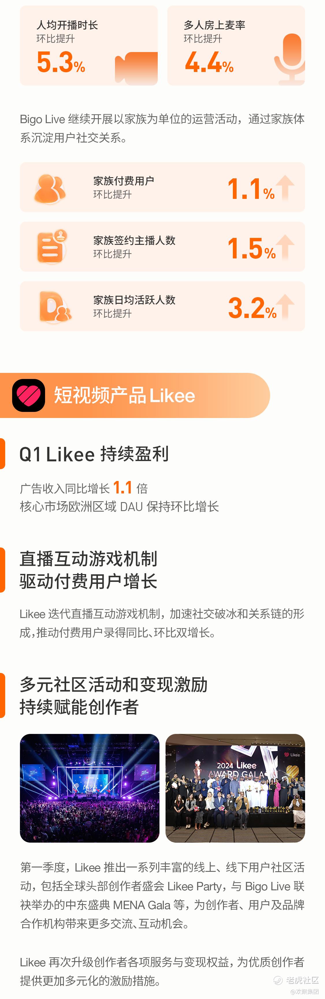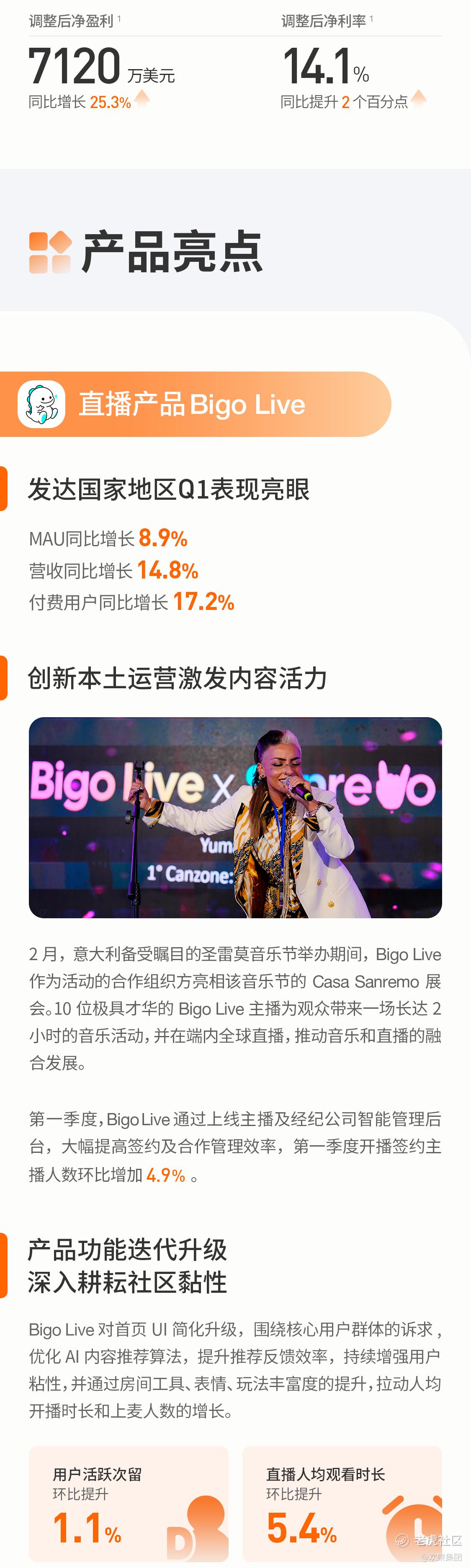 ③ 通过有针对性的运营策略,BIGO发达国家直播收入实现两位数同比增长。