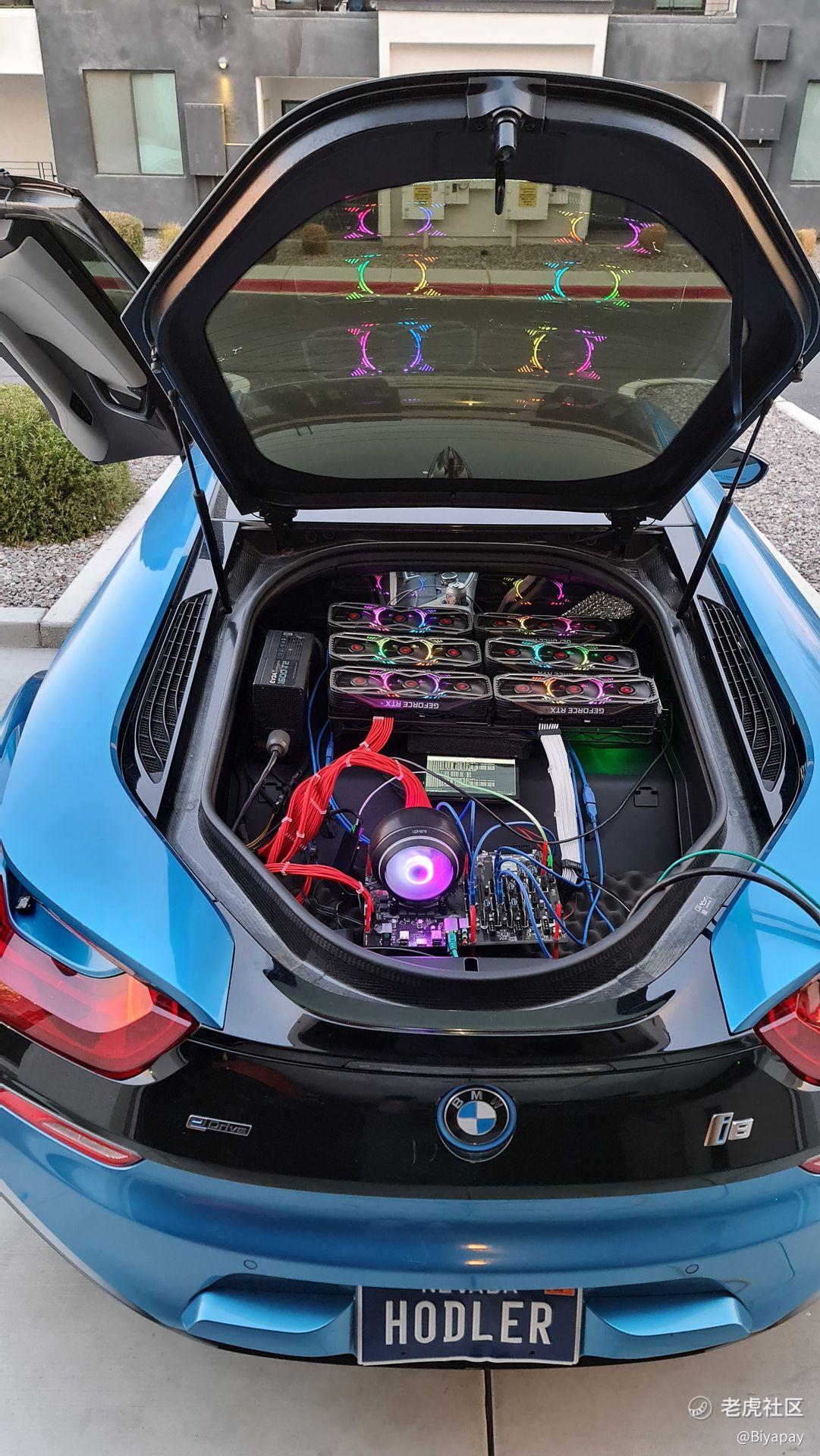 美国一名为赛门・伯尔尼(Simon Byrne)的矿工,就把六张RTX3080搭配ASUS B250 Mining Expert主板和EVGA的电源供应器「SuperNOVA 1600 T2」安装在BMW i8上,打造出一台行动豪华矿机。