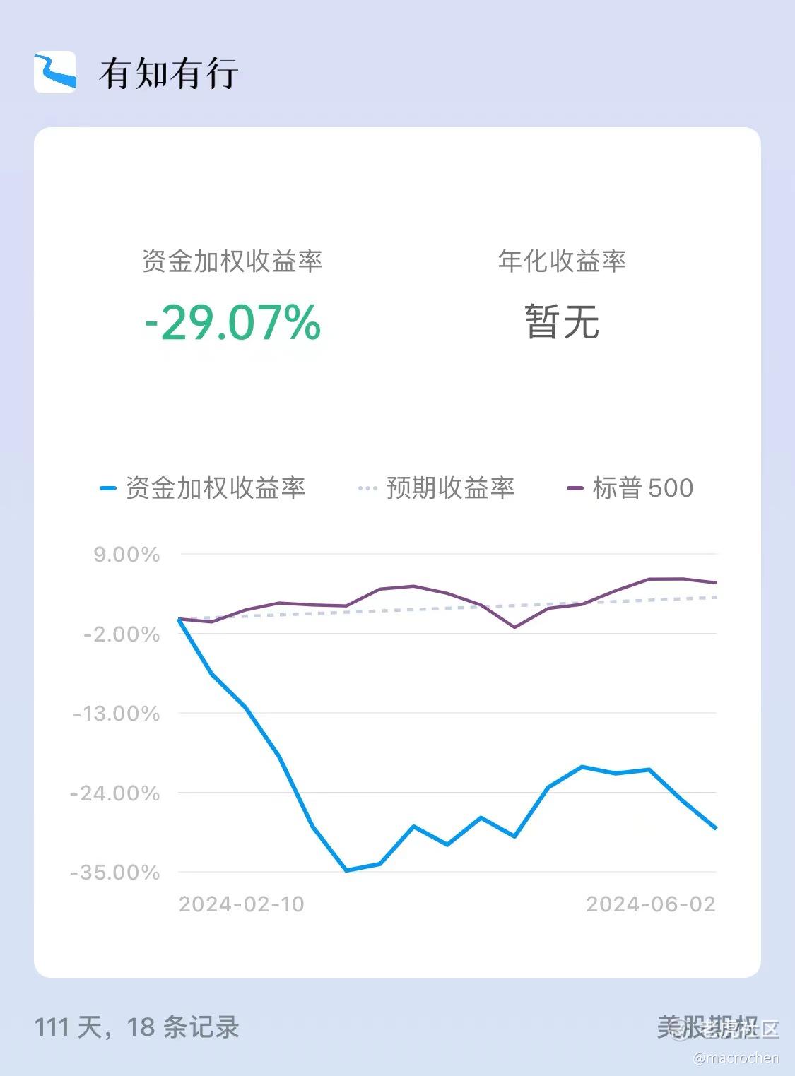 本周开盘就是悲剧的一天,芯片大涨,看了下最近五天,英伟达涨幅近20%,周二又是跳空高开。一只股票已经超过德国整个股票市场的市值了,太吓人了。 我的英伟达和ASML持仓都出现了不平衡的状态,而且还没法调整(如果不想被动加仓,调整会出现严重亏损),我本希望能有回调,然后借机做调整,结果一个新高,一个接近新高。 感觉美股做动态平衡太难了。 COST也是目前比较危险的标的,出现了两边无法中性平衡对冲的状态。本周财报前,我没有任何操作,不过财报后有所回调,给我降低了一些压力。 我最近一直在回忆前面的交易操作,为什么会出现这种状况,因为这几个比较危险的标的并没有出现突然的大幅波动,为什么我没有提前做好调仓,导致现在的局面?可能还是跟单边行情有关。