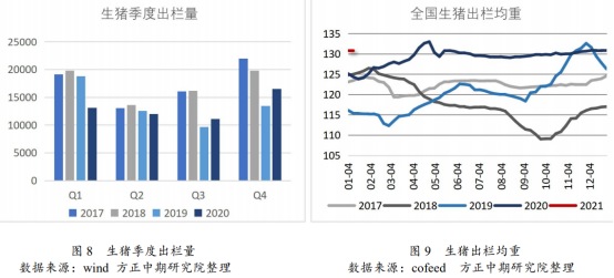 而国家统计局数据显示,四季度生猪出栏16518万头,比上年同期增长22.9%,但较正常年份出栏量仍有明显差距,表明产能恢复存在预期差。但是进入一月以来,受冬季疫病反复的担忧,出栏节奏有所加快,生猪出栏体重呈现缓跌态势。根据cofeed数据,截止至1月20日当周,全国生猪出栏均重为130.66公斤,环比前周减少0.11 公斤,已经是连续第三周下滑。