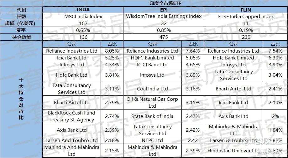 三只印度全市场ETF是贝莱德旗下iShares的INDA、WisdomTree的EPI和富兰克林富时的FLIN。