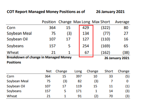 多头对空头的比率仍然接近90%,表明市场是单边的,这意味着价格会像上周一样回落。基金增加了几乎所有商品的多头头寸,玉米头寸接近 42.9 万份合约的创纪录多头头寸。 然而,鉴于供求状况,价格的任何回落都应被视为增加交易的机会。