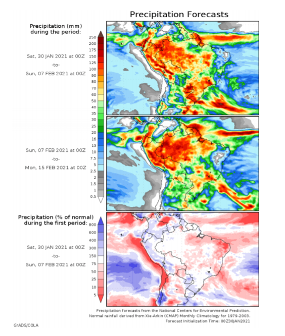 南美洲的天气预报显示,气候会比平均水平稍干,这可能是一件好事,因为这将使农民加快收割速度,而目前的收割速度与平均收割速度相比是滞后的。