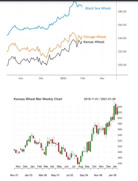 小麦价格本周回升至较高水平,扭转了上周以来的大部分价格下跌。在基本消息方面,俄罗斯确认将小麦出口税提高至 50 欧元,这是为了控制当地小麦价格。