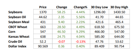 在之前一周资金流动导致价格下跌后,上周谷物和油籽市场恢复了价格上涨。基本面没有变化,这有助于推动价格回到更高的水平。