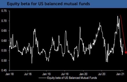 美国公募基金的平均beta值进入2021年后就急剧降低。可理解成风险敞口降低,增加防御。