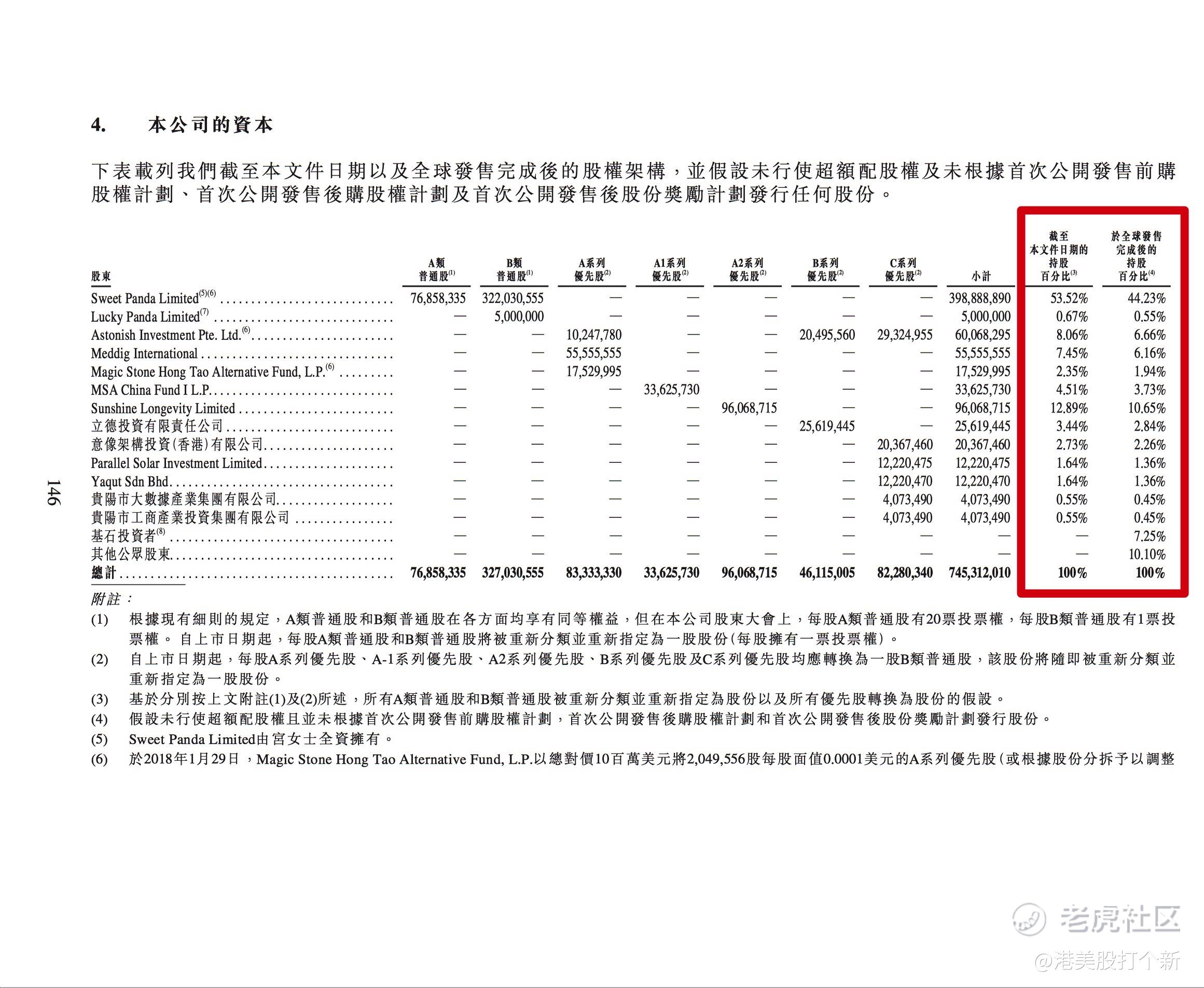 但如果公司有Pre-IPO的情况,我们会看到两部分信息,一个是持股占比,一个是新股禁售情况。