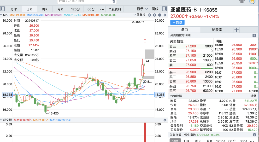 上周五(6月14号)晚间,港股创新药企亚盛医药连发三篇利好公告: