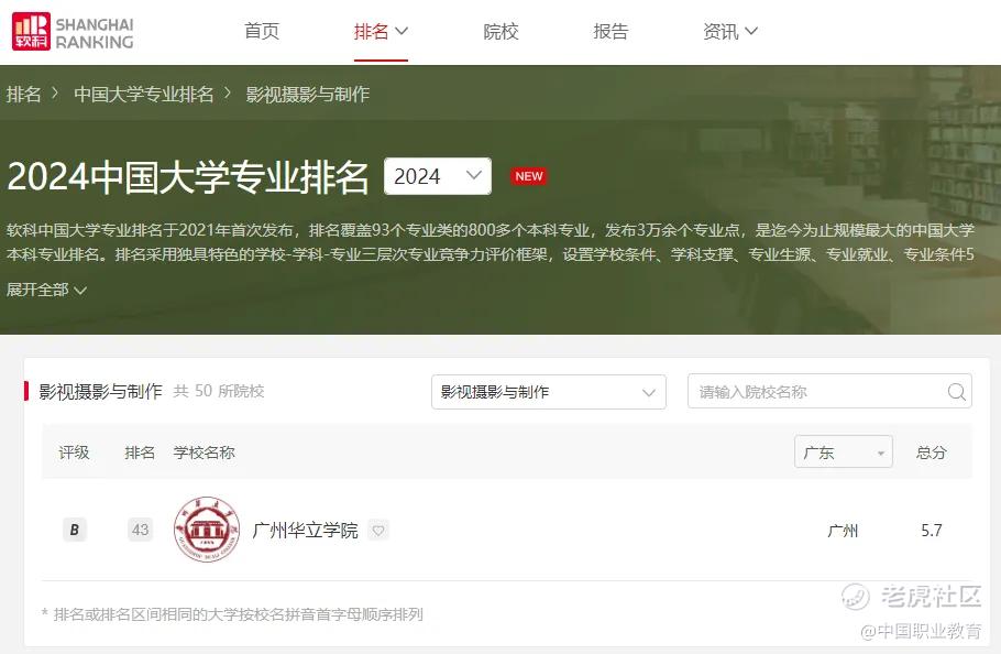 近期,2024软科中国大学专业排名榜新鲜出炉,中国职业教育控股有限公司(「公司」,股票代码:1756.HK)旗下广州华立学院(「华立学院」)传媒与艺术设计学院的影视摄影与制作专业喜获“B”级的好成绩, 在广东省排名第二,仅次于广州美术学院。