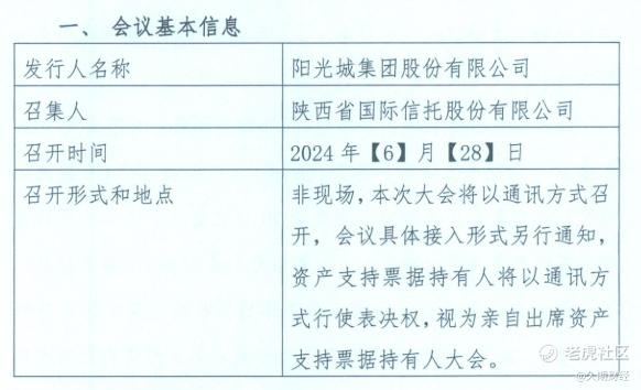 久期财经讯,6月25日,会议召集人陕西省国际信托股份有限公司(简称“陕西国际信托”)发布关于阳光城集团股份有限公司2020年度第一期资产支持票据2024年度第一次持有人大会的议案概要。