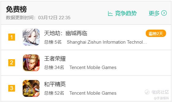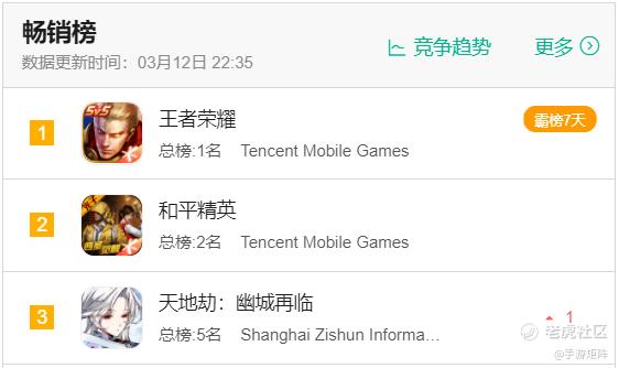 3月11日,紫龙游戏旗下《天地劫:幽城再临》手游正式上线,不出意外地很快登上了iOS免费榜第1、畅销榜第3。