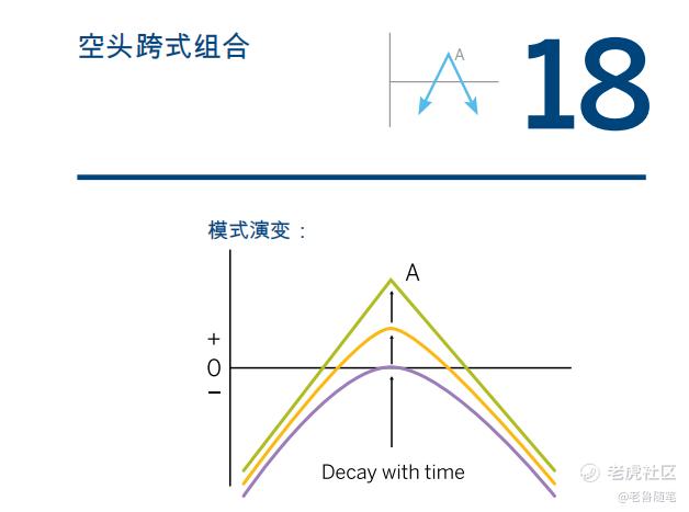 衰减特点:时间价值衰减特点因看涨期权敲定价、看跌期权敲定价与建仓时标的期货价格之间的关系而有所不同。如果期货价格正好在看涨期权和看跌期权敲定价格的中间,头寸为时间衰减中性(不受影响);如果期货价格更接近看跌期权而非看涨期权的敲定价格,头寸为多头时间衰减(从时间衰减中获益);如果期货价格更接近看涨期权而非看跌期权的敲定价格,则为空头时间衰减(时间流逝侵蚀头寸的价值)。