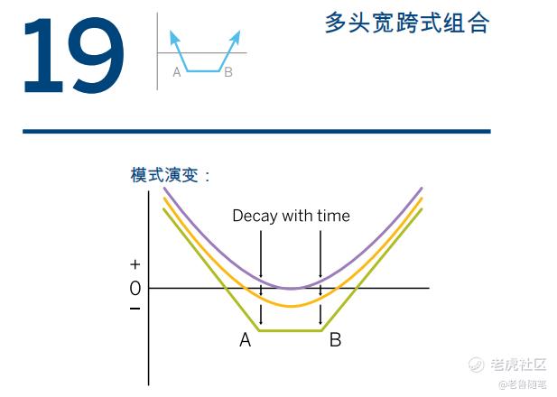 损失特点:无论市场走向如何,最大损失为收取的净权利金减去 (B-A)。这是非常保守的交易,收支平衡点为 B 加上或减去收取的净权利金。