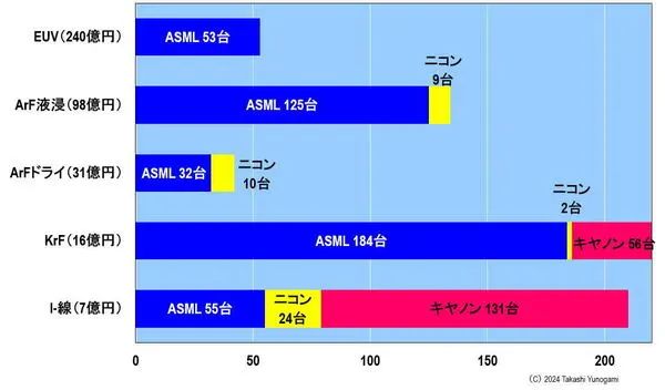 以上各种光刻设备的价格是参考ASML的财务报表计算的。在计算时,按 1 欧元 = 160 日元换算。