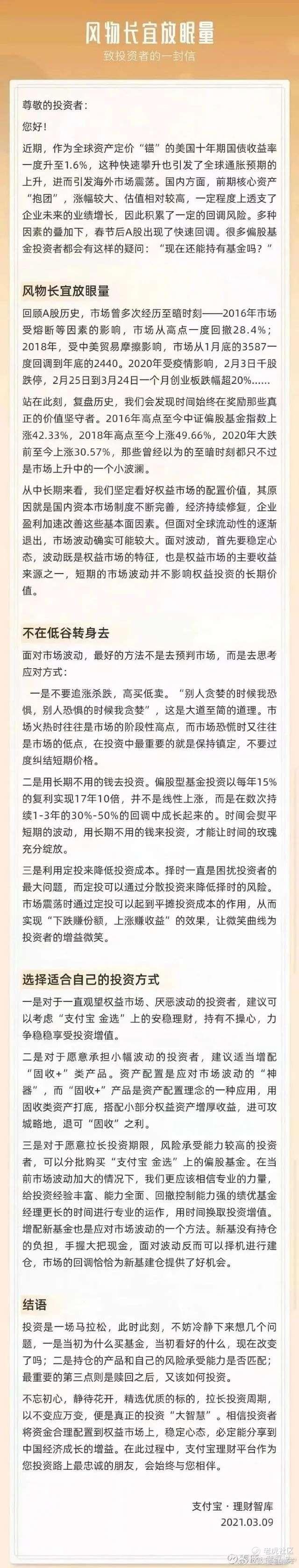 支付宝·理财智库,给投资者写了一封信,标题叫《风宜长物放眼量》。