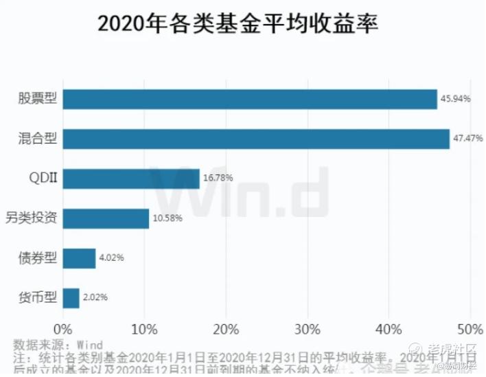 2020年基金投资者收益普遍大于股票投资者,翻倍收益基金超过80家,普遍基金收益率超过40%。