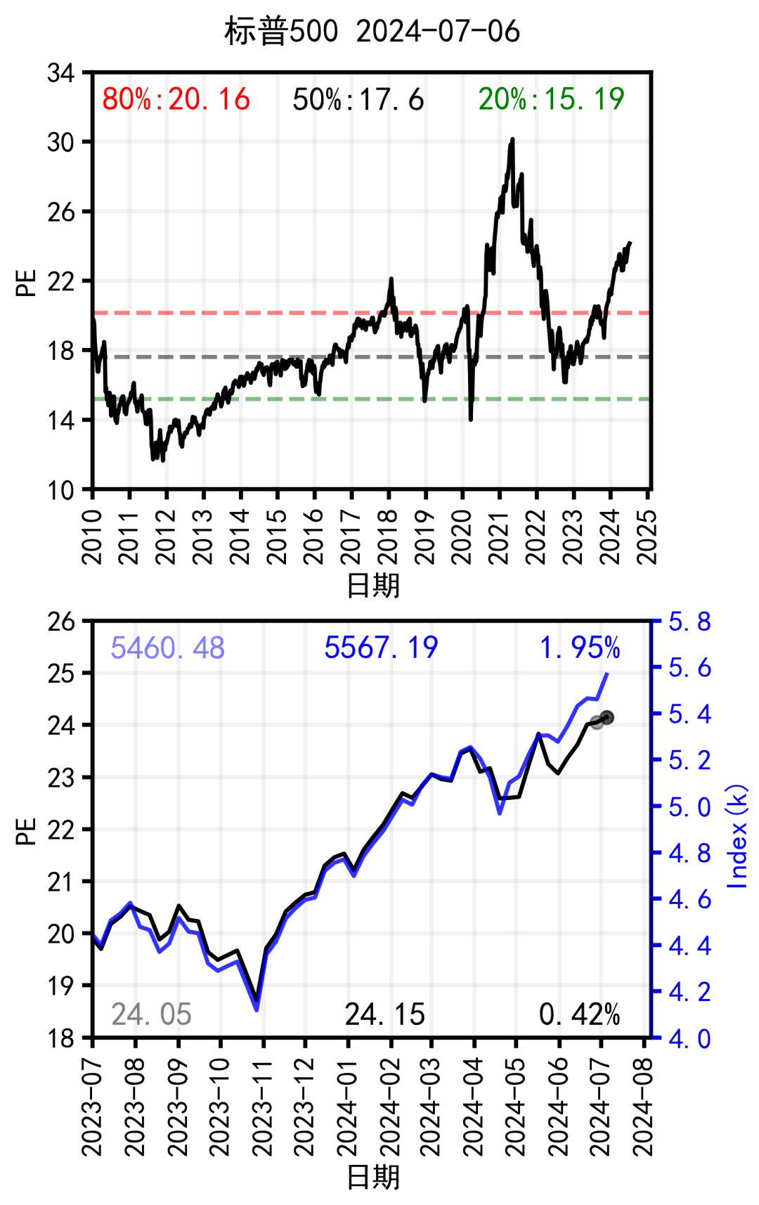 本周标普500指数大涨,PE略涨。