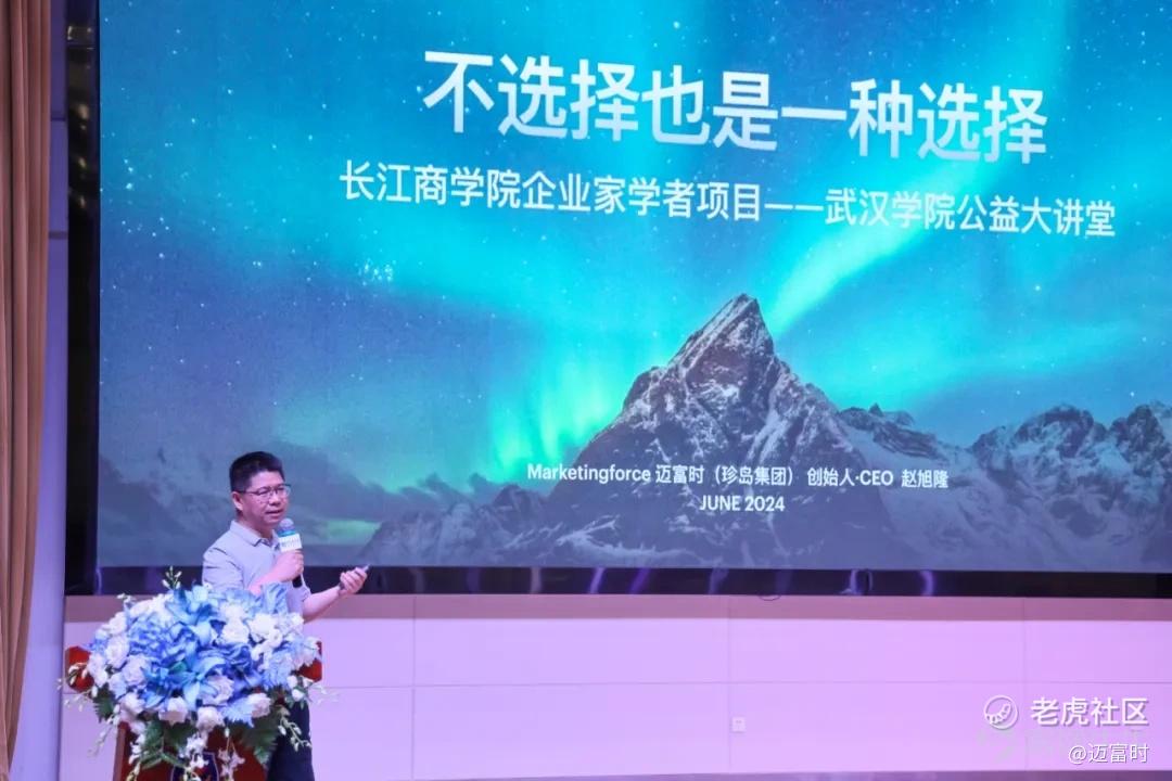 Marketingforce迈富时 $迈富时(02556)$ 创始人、董事长兼CEO赵旭隆被武汉学院正式聘请为应用专业教授,并在长江商学院企业家学者项目·武汉学院公益大讲堂,发表了主题为“青年蜕变与成长:不选择也是一种选择”的演讲,为学子们解读前沿趋势和行业发展,指引未来选择的方向。