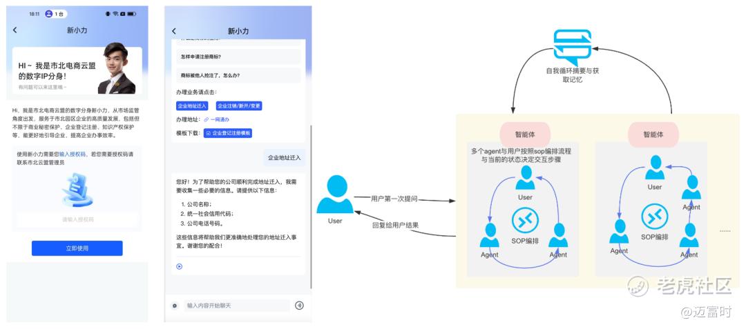 通过SOP流程,Marketingforce使知识库具备更强的任务完成能力。例如,在市政项目中,我们创建了一个智能数字IP分身,来处理企业的地址迁入、注销、新开和变更等任务。每个流程节点都通过SOP管理,确保任务完成。
