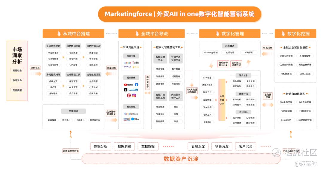 为了突破这些困境,该企业在国内众多SaaS企业中选择了Marketingforce进行合作。希望借助Marketingforce的All in One(一站式)数智化工具和AI营销能力,实现有效的海外数智化转型,为企业创造稳定的增长曲线。