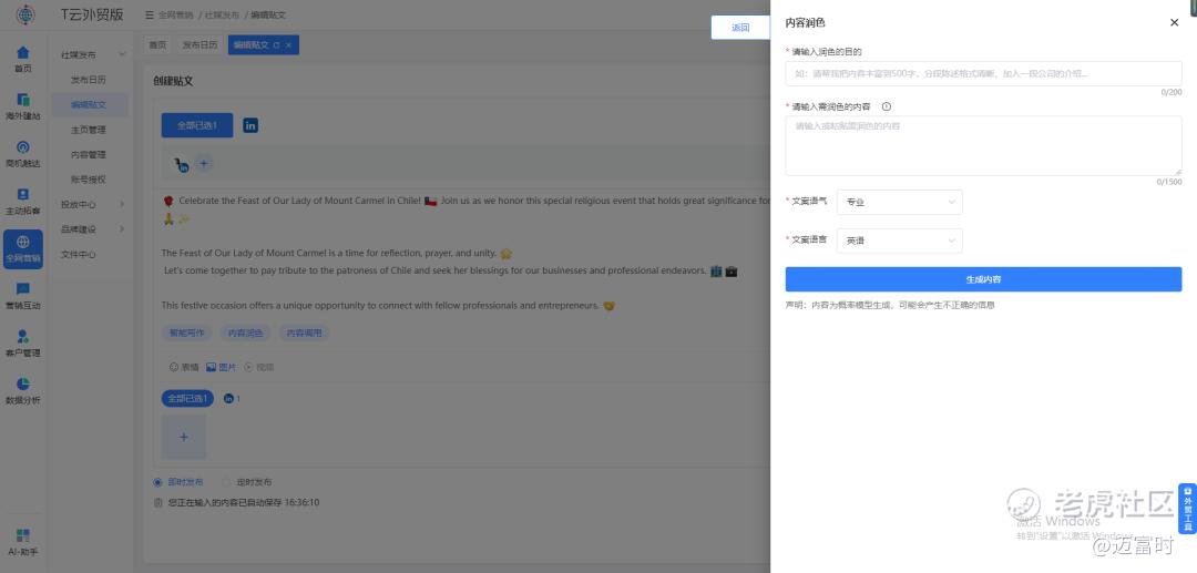(图 T云外贸版社媒营销+AI内容生成)
