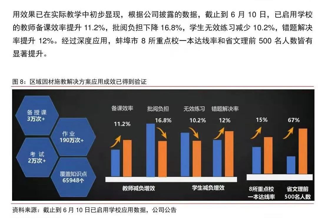1. 产品力是核心,讯飞智慧教育是有数据验证的,可见实际效果的。技术上它是一个帕累托改进的方案,提效减负,学生、老师、家长、学校都受益了。学生减少不必要的重复练习,老师减少批改作业的时间,系统能针对每一个学生给与个性化学习方案。如图
