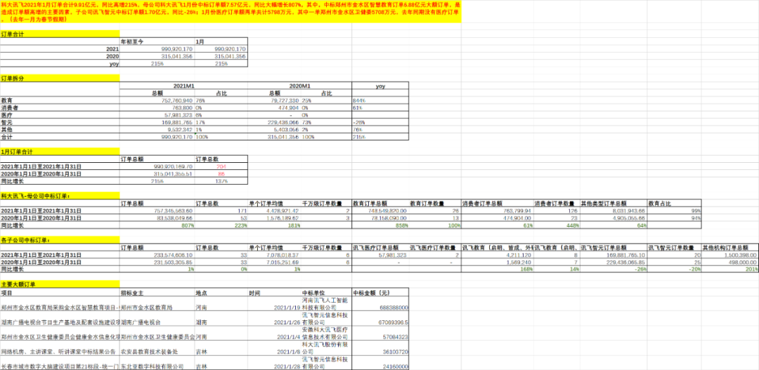(21年1月订单整理 来源:网友根据公开信息整理)