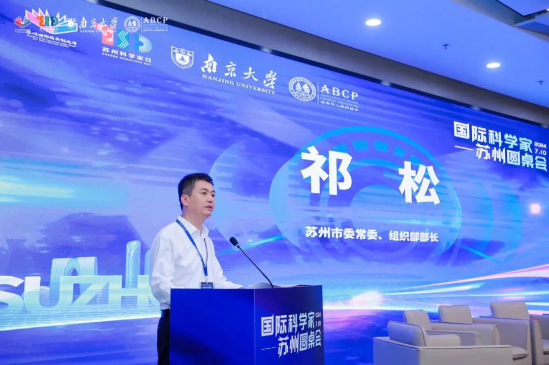 7月10日下午,第十六届苏州国际精英创业周暨第五届苏州科学家日的重要活动之一的2024国际科学家苏州圆桌会在苏州全球路演中心举办。南京大学党委常委、组织部部长焦瑞华,英国皇家工程院院士、全英华人教授协会主席董洪标,苏州市委常委、市委组织部部长祁松出席大会并致辞。海内外院士、领域内专家以及上市公司、头部企业、科技创新企业代表,离岸机构、创投界、重点孵化器机构代表,以及科技招商代表共240余人参加。活动第一阶段高端沙龙由俄罗斯工程院外籍院士、苏州市科协主席路建美主持。