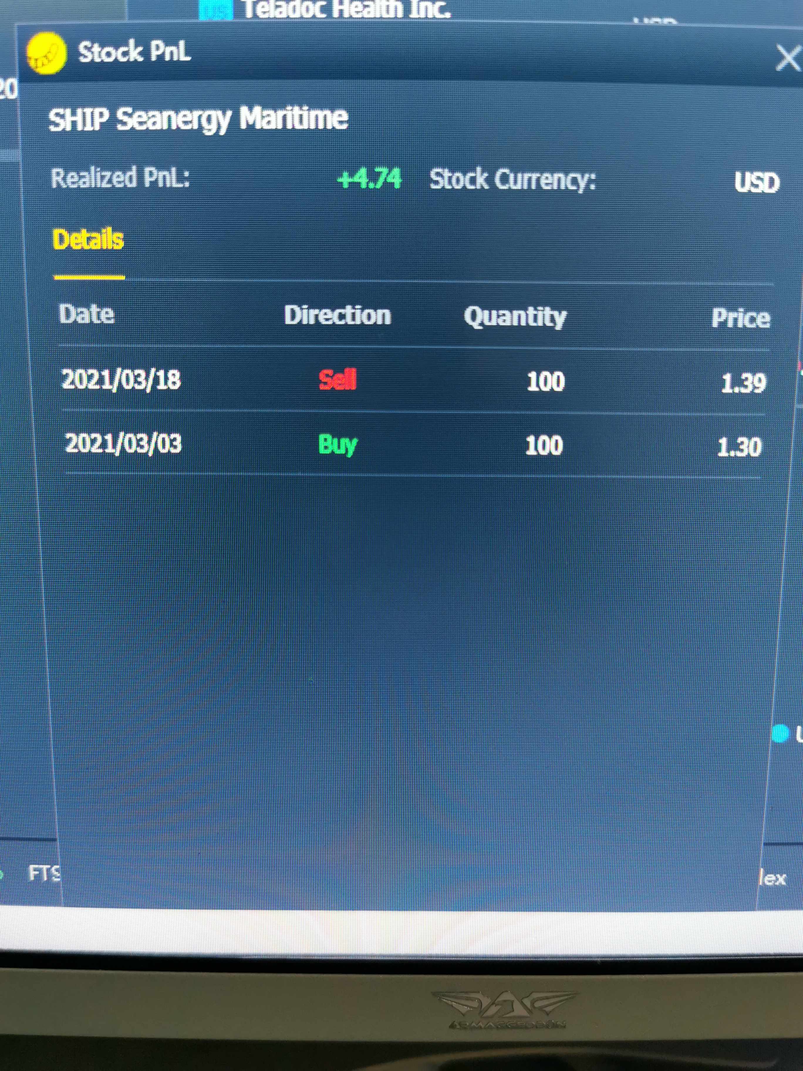 How come my profit is only 4dollar plus when the difference in my buy and sell is 9 dollar in total? I used commission free cards as well $Seanergy Maritime(SHIP)$@小虎通知@小虎AV@小虎周报
