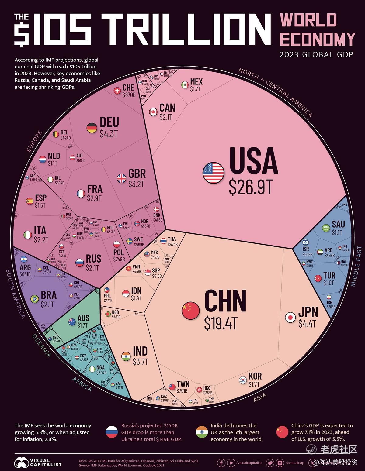 (全球经济球状图,来源:visualcapitalist。注,编者将台湾与香港仅仅是单列为了方便计算,我们都知道这些是中国领土)